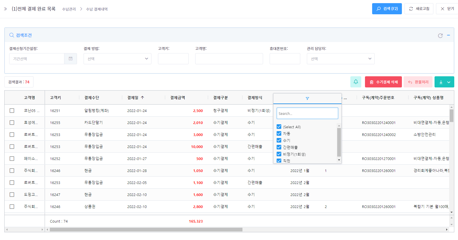 통합 결제 내역 조회